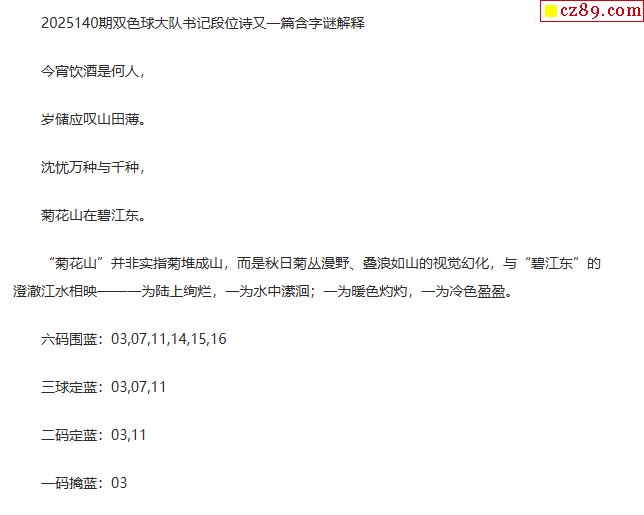 > 25年福彩双色球140期 大队书记段位诗另一篇